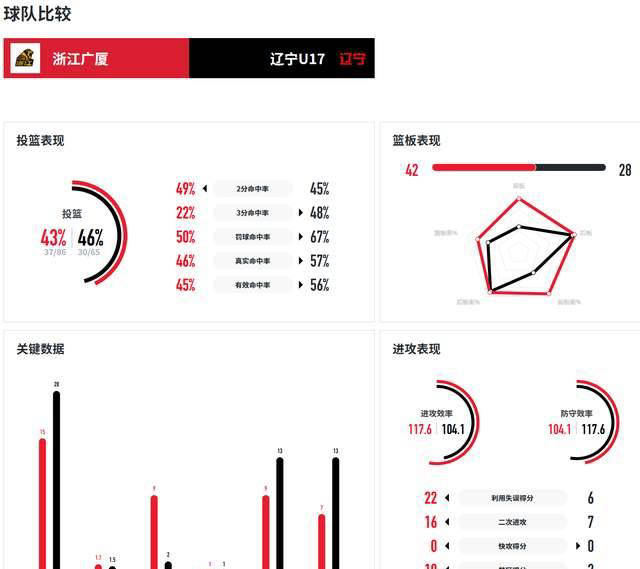 由于出手次数不足,辽宁队难以确保获得更高的得分。在抢篮板方面,辽宁队同样表现平平,本场比赛仅抢到28个篮板,远不及对手的42个,导致对手拥有更多的二次进攻机会。