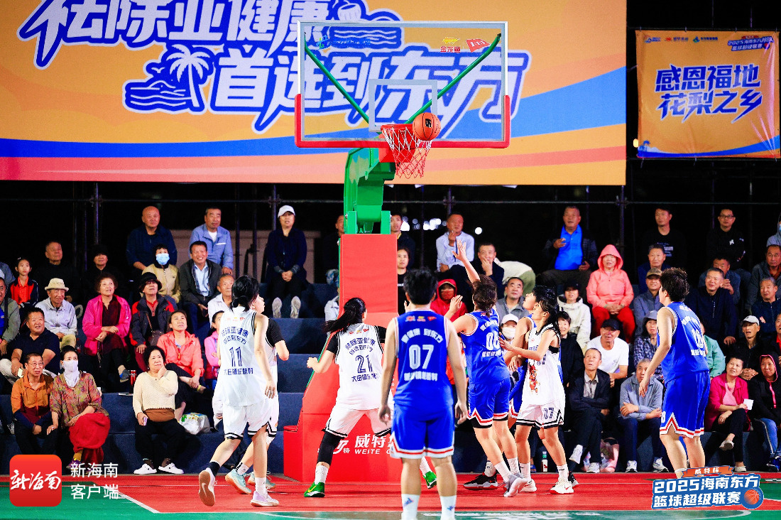 11月14日晚,“威特杯”2025海南东方篮球超级联赛进入第二轮。首场比赛由卫冕冠军板桥镇板桥村女队VS大田镇乐妹村女队。记者 洪盛伟 摄