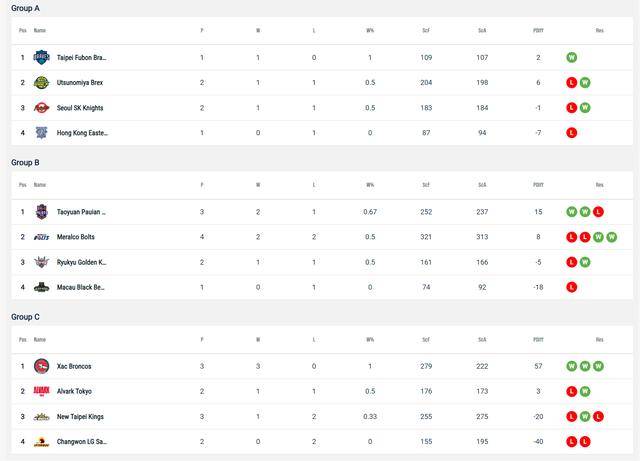 目前A组的富邦勇士小组第一,B组的桃园璞园领航猿小组第一,C组的乌兰巴托野马小组第一,25-26赛季的东超正在如火如荼的进行着。