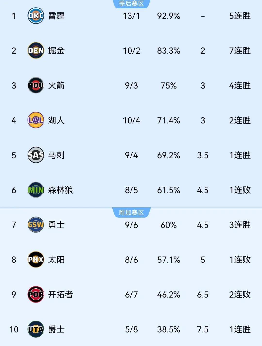 在文班亚马的带领下,马刺本赛季开局表现亮眼,曾一度打出5连胜,现以9胜4负排名西部第五。但如今随着文班亚马的缺席,球队战绩可能会遭遇急转直下的危机。西部排名第六的森林狼与第七的勇士仅落后马刺1个胜场,而排名第八的太阳则落后1.5个胜场。
