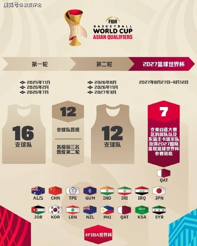 男篮世界杯预选赛分为两个阶段,其中亚洲大洋洲、非洲、美洲这三个赛区赛制相同,均为16支球队参赛。东道主卡塔尔虽直接晋级,也将参加预选赛。