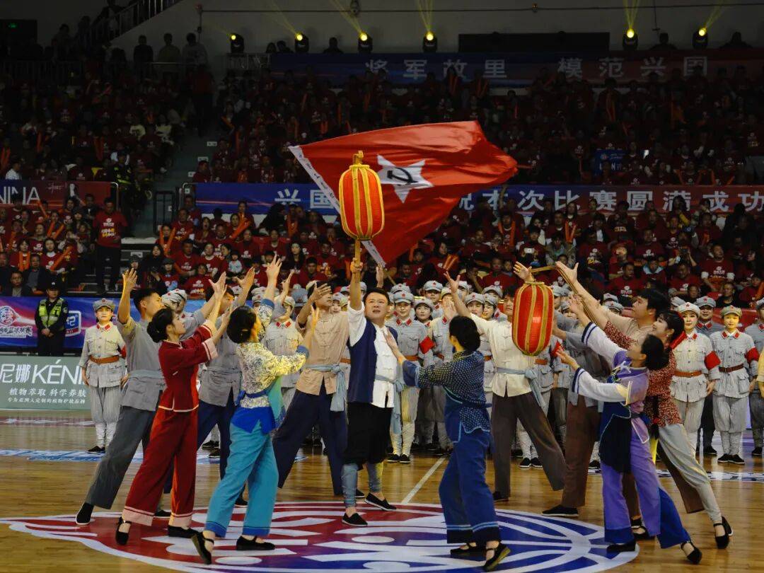 作为“中国苏区模范县”“红军县”,兴国每一寸土地都铭刻着峥嵘岁月的记忆。赛事巧妙地将这份独特的红色基因,渗透至每一处细节,一句“哎呀嘞”,激昂的《苏区干部好作风》旋律响起,瞬间将观众带回那段作风过硬、艰苦奋斗的燃情岁月。那响彻全场的“迎篮而上,为城而战”的呐喊,早已不止是城市荣誉的宣言,更是新时代“苏区精神”在体育赛场上的嘹亮回响。