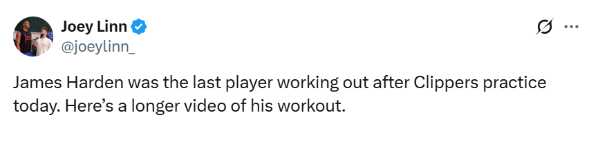 快船多位队记表示,36岁的哈登是今天练到最后一个离开的球员。他加练了大量的三分球和中投,此前,哈登曾表示目前的身体状态是生涯最佳的水准。返回搜狐,查看更多